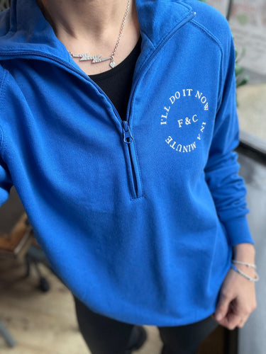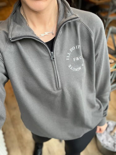 Zip up sweater “I’ll do it now in a minute” charcoal