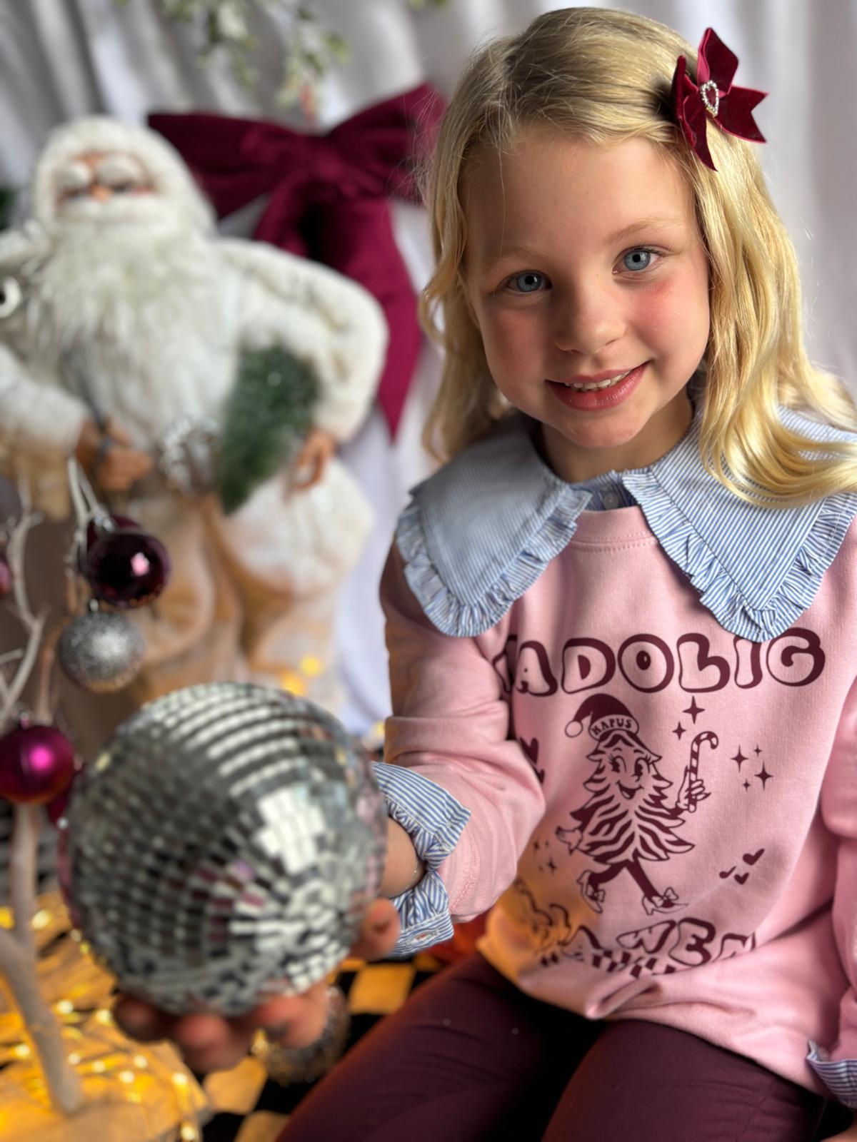 NEW "Nadolig Llawen" girls Christmas tree print (pink sweater with red)